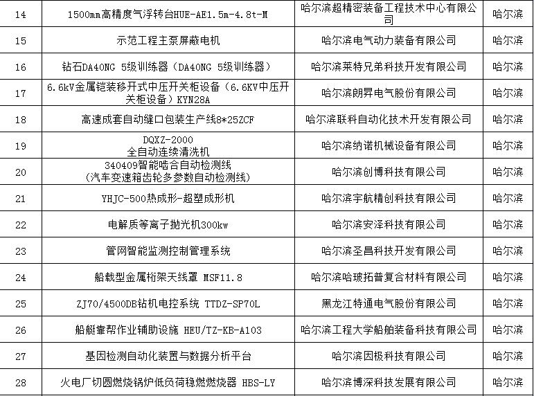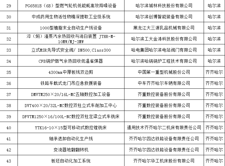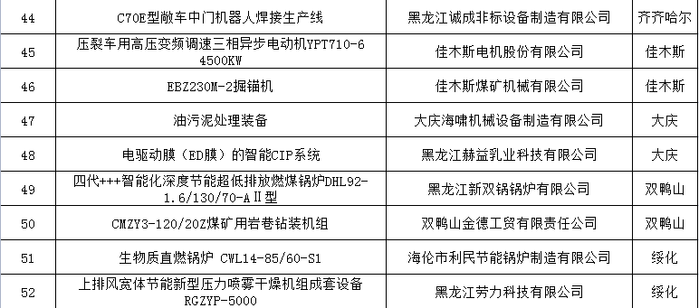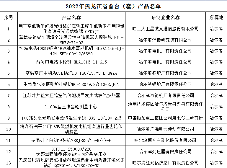 近日,记者从省工信厅获悉,根据《黑龙江省首台(套)产品认定办法》规定,省工信厅组织开展了2022年黑龙江省首台(套)产品认定工作。经企业申请、市(地)推荐、第三方机构评审、社会公示等程序,认定52个产品为2022年黑龙江省首台(套)产品。名单如下: